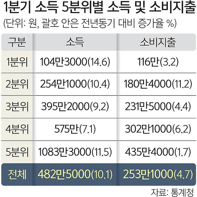 1분기 가구 월평균 소득 482만원.. 1년전보다 10.1%늘어