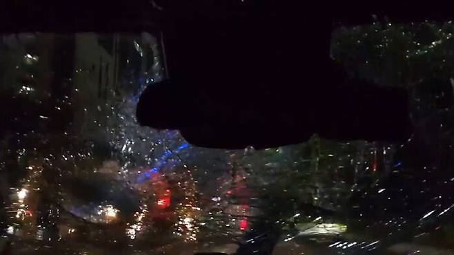유리창이 산산조각이 나 발이 차 안까지 들어올 정도입니다.
