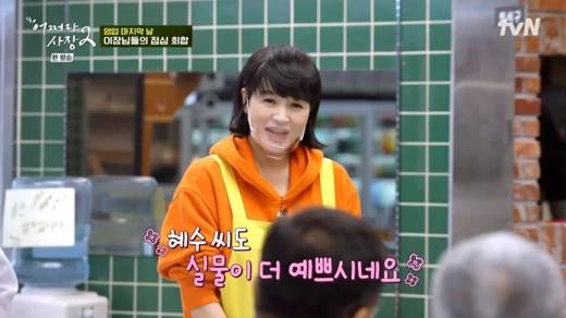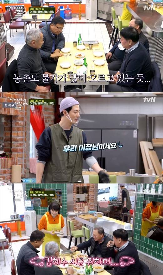 이날 네 명의 이장님이 점심 손님으로 찾아왔다. 이들은 대게라면 네 그릇과 소주 한 병을 주문했다. 서빙을 맡은 김혜수가 음식을 내오자 이장님은 "영광이다"며 인사했다.