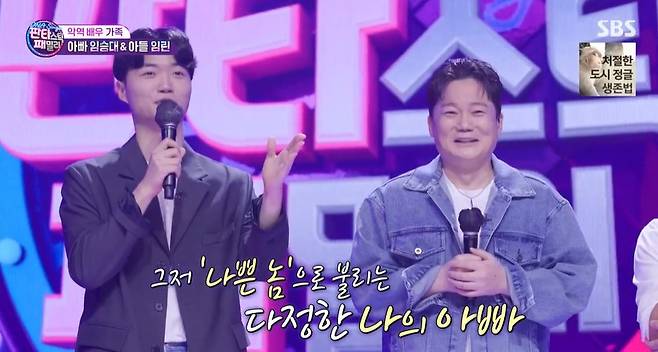 이에 임승대의 아들 임린 씨는 “아빠 이름이 빨리 안 나와서 조마조마했다. 보통 아버지 이름을 잘 모르고 ‘나쁜 사람’ ‘나쁜 악역배우’라고 하더라. 오늘 아빠 이름 홍보하러 나왔다”면서 “이제 내가 아빠 곁을 지키겠다. 항상 고맙고 사랑한다”고 고백, 감동을 자아냈다.