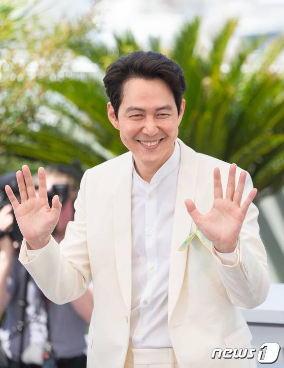 (칸=뉴스1) 이준성 프리랜서기자 = 배우 겸 감독 이정재가 19일 오후(현지시간) 프랑스 남부 칸 ‘팔레 데 페스티벌’(Palais des Festivals)에서 열린 제75회 칸 국제영화제에 미드나잇 스크리닝 부문에 자신이 감독한 영화 '헌트’로 칸에 초청, 포토콜 행사가 열려 포즈를 취하고 있다. 2022.5.19/뉴스1