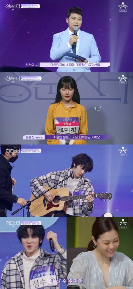 19일 방송된 채널A '청춘스타'가 국내 최초 케이팝 3교전을 예고하며 포문을 열었다. 아이돌 부문과 보컬 부문, 싱어송라이터 부문으로 진행되는 '청춘스타'는 MC 전현무의 소개로 시작됐다.