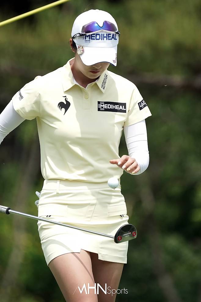 김재희(21.메디힐)가 1번홀 그린에서 홀아웃하고 있다.