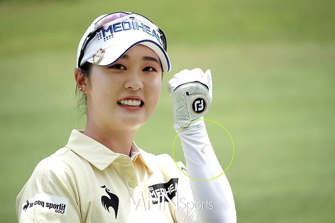 김재희(21.메디힐)가 2번홀 언덕 러프 탈출 중 가시에 찔려 피를 흘리고 있다.
