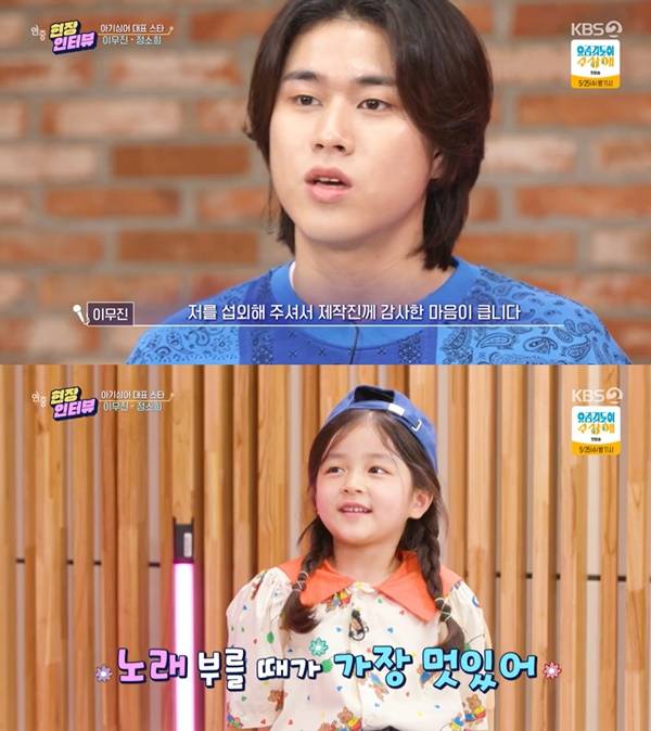 19일 방송된 KBS2 예능프로그램 '연중 라이브'에서는 '아기싱어' 이무진과 정소희 양의 인터뷰가 전파를 탔다.