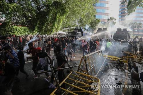 epa09957869 Security forces use tear gas and water canons to disperse a University students protest, calling for the resignation of the president over the alleged failure to address the economic crisis, near the President's house in Colombo, Sri Lanka, 19 May 2022. Thousands of university student stage a protest march calling for the resignation of the president over the alleged failure to address the economic crisis. Sri Lanka faces its worst ever economic crisis in decades due to the lack of foreign reserves, resulting in severe shortages in food, fuel, medicine, and imported goods. EPA/CHAMILA KARUNARATHNE