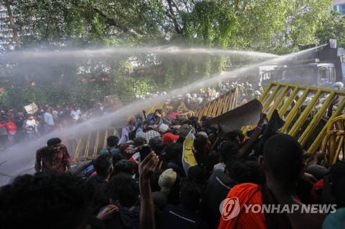 epa09957881 Security forces use tear gas and water canons to disperse a University students protest, calling for the resignation of the president over the alleged failure to address the economic crisis, near the President's house in Colombo, Sri Lanka, 19 May 2022. Thousands of university student stage a protest march calling for the resignation of the president over the alleged failure to address the economic crisis. Sri Lanka faces its worst ever economic crisis in decades due to the lack of foreign reserves, resulting in severe shortages in food, fuel, medicine, and imported goods. EPA/CHAMILA KARUNARATHNE