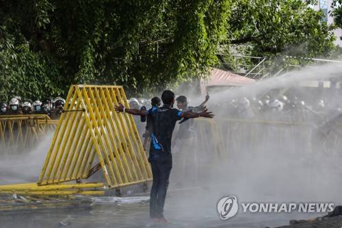 epa09957886 Security forces use tear gas and water canons to disperse a University students protest, calling for the resignation of the president over the alleged failure to address the economic crisis, near the President's house in Colombo, Sri Lanka, 19 May 2022. Thousands of university student stage a protest march calling for the resignation of the president over the alleged failure to address the economic crisis. Sri Lanka faces its worst ever economic crisis in decades due to the lack of foreign reserves, resulting in severe shortages in food, fuel, medicine, and imported goods. EPA/CHAMILA KARUNARATHNE