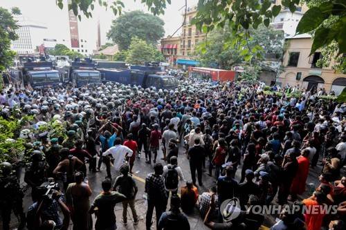 epa09957889 Security forces try to disperse a University students protest, calling for the resignation of the president over the alleged failure to address the economic crisis, near the President's house in Colombo, Sri Lanka, 19 May 2022. Thousands of university student stage a protest march calling for the resignation of the president over the alleged failure to address the economic crisis. Sri Lanka faces its worst ever economic crisis in decades due to the lack of foreign reserves, resulting in severe shortages in food, fuel, medicine, and imported goods. EPA/CHAMILA KARUNARATHNE