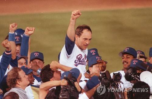 FILE - Texas Rangers pitcher Nolan Ryan is carried off the field by his teammates after throwing his seventh no-hitter against the the Toronto Blue Jays in Arlington, Texas, May 1, 1991. Hall of Fame pitcher Nolan Ryan is the subject of a new documentary. (AP Photo/Bill Janscha, File) FILE PHOTO