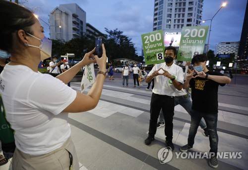 epa09957908 Bangkok governor independent candidate Chadchart Sittipunt (C) poses for photos with a teenager supporter during a gubernatorial election campaign event at night commercial district in Bangkok, Thailand, 19 May 2022. Chadchart Sittipunt, former transport minister in the government of former prime minister Yingluck Shinawatra, is one of thirty candidates running in the long-anticipated election for Bangkok governor, set to be held on 22 May 2022. It will be the first such elections in nine years since 2013 after the military seized power in a 2014 coup. EPA/NARONG SANGNAK