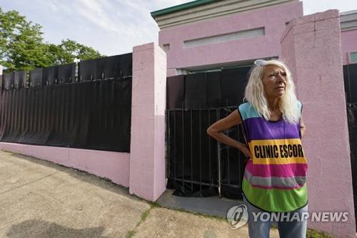 FILE - Derenda Hancock, co-organizer of the "Pink House Defenders," stands outside the Jackson Women's Health Organization, Mississippi's last remaining abortion clinic, also known as the "Pink House", May 3, 2022, in Jackson, Miss. Mississippi is one of the poorest states in the nation, and women would face even steeper hurdles to have access to abortion — arranging time off work, finding ways to pay for travel and lodging and, in many cases, arranging for child care while they are gone. (AP Photo/Rogelio V. Solis, File) FILE PHOTO