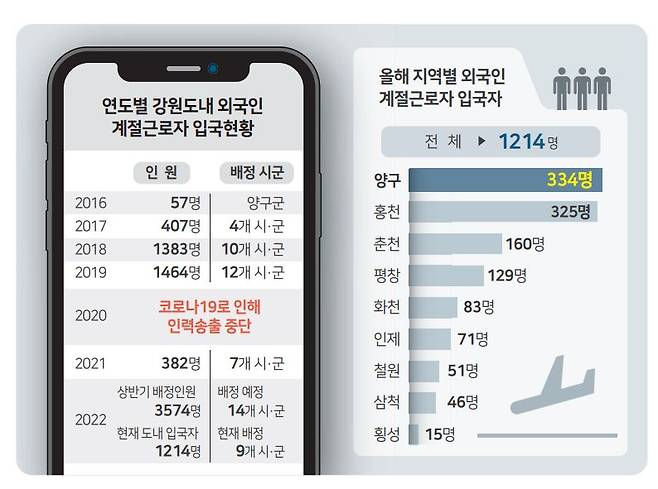 강원 농업에서 외국인 근로자는 이제 빼놓을 수 없는 존재로 자리 잡았지만 그들은 조직적으로 강원도를 떠나고 있다. 불법체류 외국인 용역의 경우 브로커를 통한 인력 유출이 계속되고 있고 합법적인 절차를 통해 비자를 발급받고 국내에 들어온 계절근로자 역시 임금을 더 많이 준다는 공장 등으로 무단이탈하며 불법체류자가 되는 경우가 속출하고 있다. 심지어 최근에는 텔레그램이나 자체 인력앱 등을 통해 외국인 근로자끼리도 정보를 공유, 무단 이탈을 돕는 경우도 생겨나고 있다.