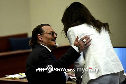 조니 뎁 팬들은 법원 주변에서 뎁이 그녀와 포옹하고 농담을 하는 장면을 포착했다.