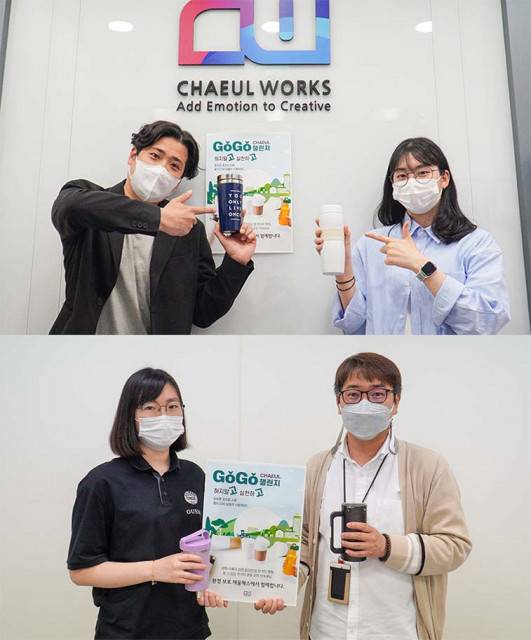 채울웍스가 가장 먼저 시행한 일은 일회용 컵 사용 금지다. 회사 내 둔 일회용 컵을 전부 없애고, 직원들 모두가 다회용 컵을 사용하면서 고고 챌린지에 적극적으로 참여하는 모습을 보여줬다.