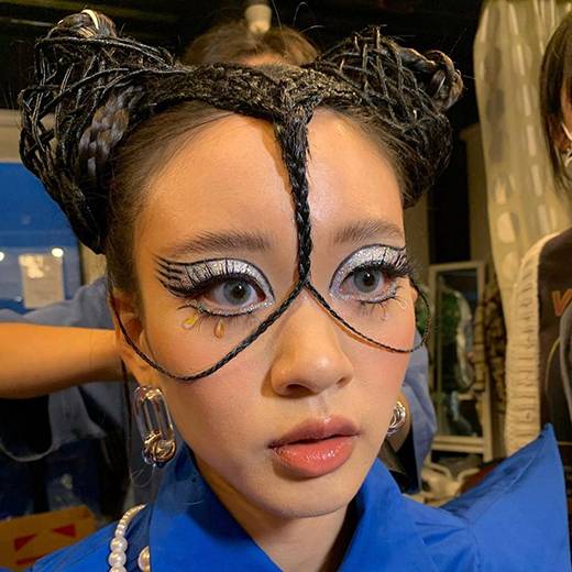 릴체리는 캐릭터적 요소가 가득한 아트 메이크업을 공개했다. 유니크한 헤어 액세서리에 이어 날개를 연상시키는 아이라인 디자인과 눈언저리를 가득 메운 실버 글리터 등 세상 블링블링하게 이미지 변신을 꾀한 것.