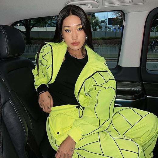 효린은 강렬한 비비드 컬러 메이크업마저 완벽하게 소화해 보였다. 까만 피부와 대조되는 진한 옐로 섀도를 선택해 시크한 느낌을 배가시켰으며, 색에 집중한 만큼 다른 부위는 최대한 단조롭게 힘을 빼 마무리했다. (사진출처: 나다, 릴체리, 씨엘, 제시, 페기 구, 효린 인스타그램)
