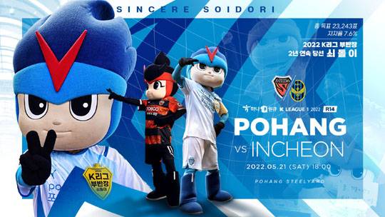 한편, 이번 인천전 티켓예매는 포항스틸러스 구단 공식 홈페이지와 티켓링크를 통해 할 수 있다.