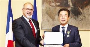 이성희 농협중앙회장(사진)이 20일 프랑스 정부로부터 농업공로훈장(메리트 아그리콜) 기사장(슈발리에)을 받았다. 프랑스 정부는 농식품 분야 발전에 지대하게 공헌한 개인이나 단체에 농업공로훈장을 수여한다. 이 회장은 작년 프랑스의 협동조합이자 최대 금융그룹인 크레디아그리콜(CA)을 방문해 업무협약을 맺는 등 협동조합 간 협력에 힘쓴 공로를 인정받았다.
