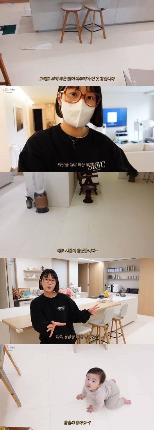 특히 한지혜의 딸 윤슬이는 매트 시공이 끝난 바닥 위를 이리저리 기어다녔다.