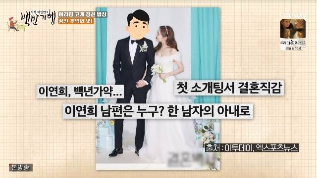 그런만큼 허영만은 이연희가 결혼을 했는지 궁금해했다. 이에 이연희는 "저는 결혼했다"고 밝히며 남편을 어떻게 만났냐는 질문에 "소개팅이다. (결혼한 지) 2년 가까이 돼간다"고 답했다.