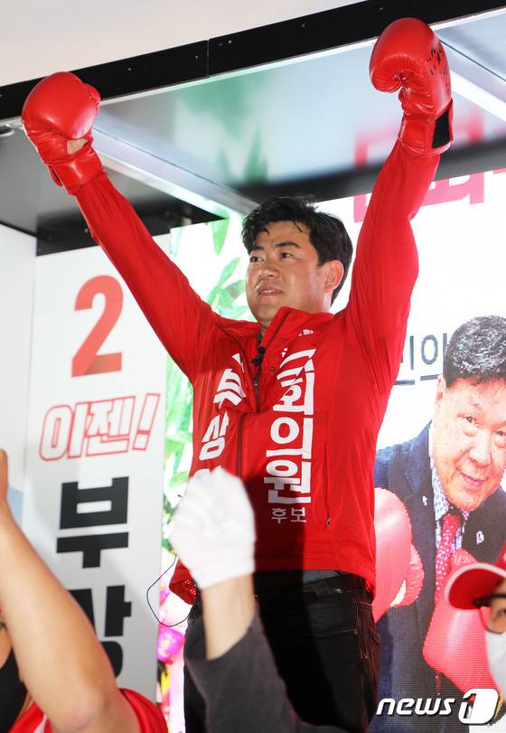 출정식서 지지 호소하는 부상일
