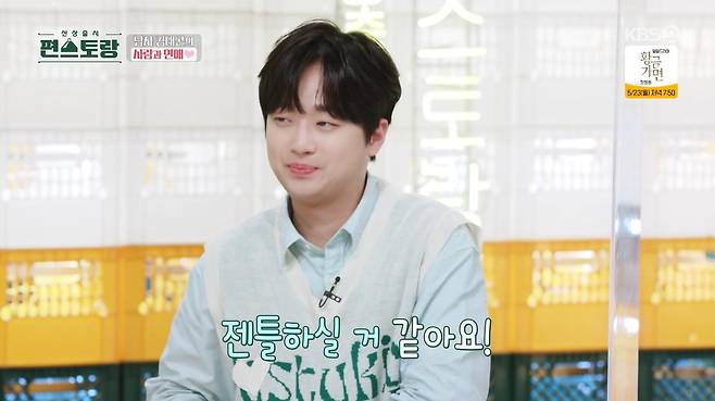 이어 "이태곤을 감당하기 쉽지 않을 거"라는 지상렬의 말에 그는 "까다롭다고 생각하는데 아니다. 나는 이해를 많이 해준다"고 자신을 드러냈다.