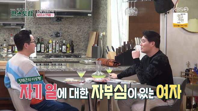 "마지막 연애가 2~3년 됐다"는 이태곤은 이상형으로 '멋있는 여자'를 꼽으며 "자기 일에 대한 자부심이 있는 여자가 좋다"고 설명했다. 이어 "이태곤을 감당하기 쉽지 않을 거"라는 지상렬의 말에 그는 "까다롭다고 생각하는데 아니다. 나는 이해를 많이 해준다"고 자신을 드러냈다.