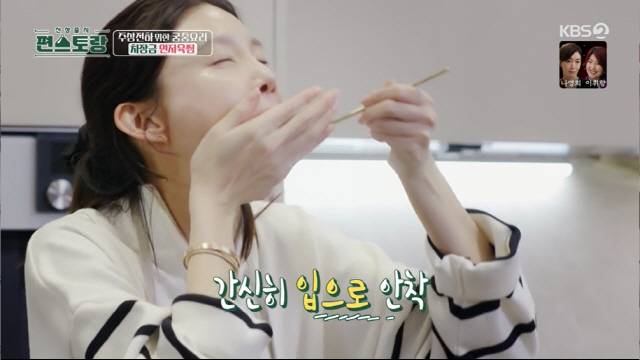 이날 차예련은 남편 주상욱이 출연 중인 드라마 '태종 이방원'을 보며 "집에 못 온지 한 열흘 됐나 여보? 어딨어"라고 두리번 거렸다. 차예련은 "남편이 이방원을 하니까 맨날 수라상을 대접해야 할 것 같다"라고 중얼거리며 폭풍공부를 시작했다. 그는 "임금님만 드셨던 음식"이라면서 레시피를 공부했다.