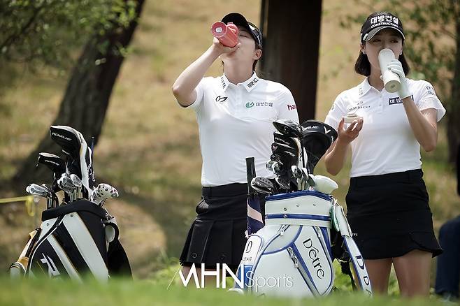 오지현(26.대방건설), 김지현(31.대보건설)이 12번홀 티샷을 준비하고 있다.
