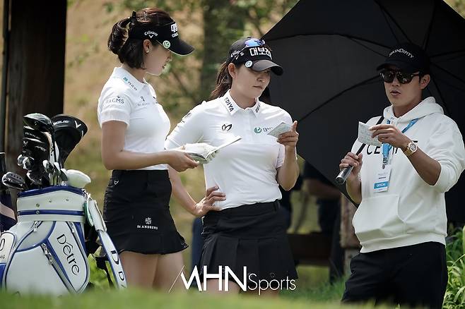 오지현(26.대방건설), 김지현(31.대보건설)이 12번홀 티샷을 준비하고 있다.