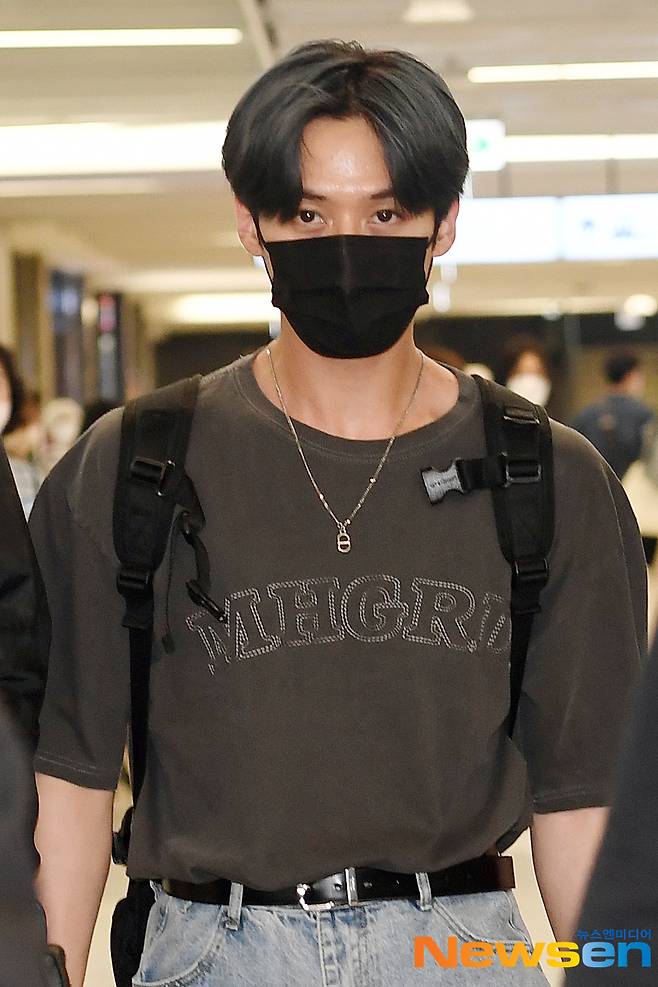 스트레이키즈(StrayKids) 멤버 리노(Lee Know)가 5월 20일 오후 서울 강서구 방화동 김포국제공항 국내선을 통해 제주도에서의 촬영 일정을 마치고 도착하고 있다.