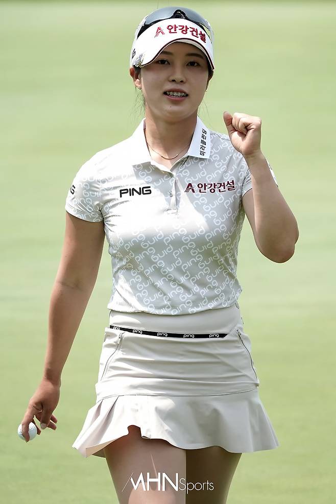 전예성(21.안강건설)이 11번홀 홀아웃하고 있다.