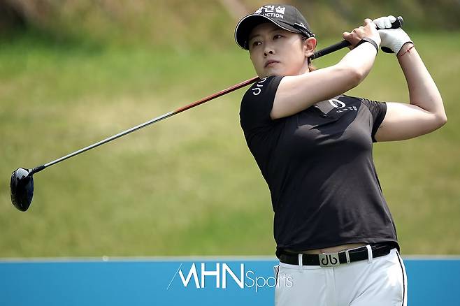 정연주(30.대방건설)가 12번홀 티샷을 날리고 있다.