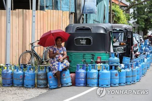 epa09960565 People queue up to buy domestic cooking gas cylinders near a selling depot amid a cooking gas shortage in Colombo, Sri Lanka, 20 May 2022. Protests have been rocking the country for weeks, calling for the resignation of the president and government over the alleged failure to address the worsening current economic crisis. Sri Lanka faces its worst economic crisis in decades due to the lack of foreign exchange, resulting in severe shortages in food, fuel, medicine, and imported goods. EPA/CHAMILA KARUNARATHNE