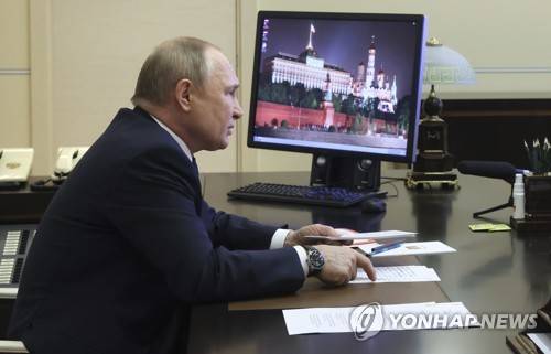Russian President Vladimir Putin chairs a meeting with members of the Security Council via teleconference call at the Novo-Ogaryovo state residence outside Moscow, Russia, Friday, May 20, 2022. (Mikhail Metzel, Sputnik, Kremlin Pool Photo via AP) POOL PHOTO