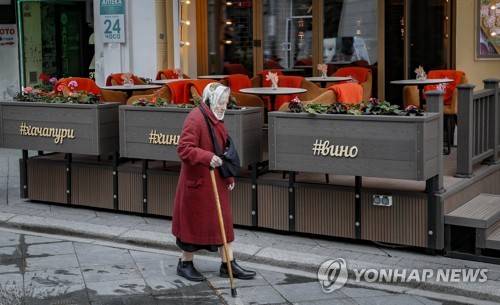 epa09960648 An elderly woman walks past an empty restaurant in Moscow, Russia, 20 May 2022. EPA/YURI KOCHETKOV