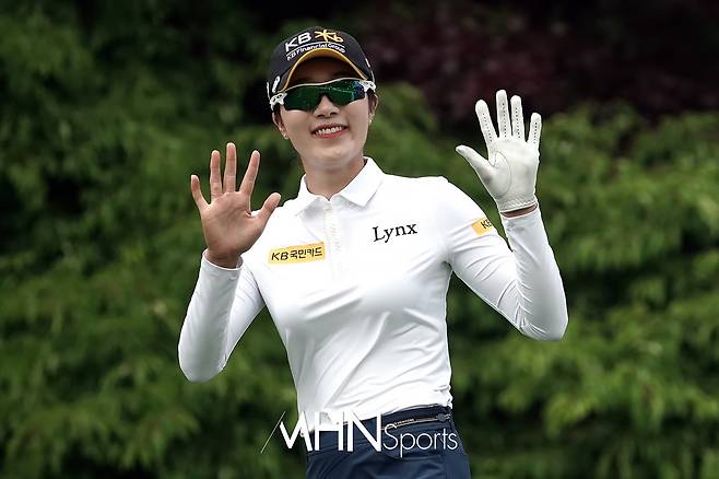 안송이(32.KB금융그룹)가 1번홀 페어웨이로 이동하고 있다.