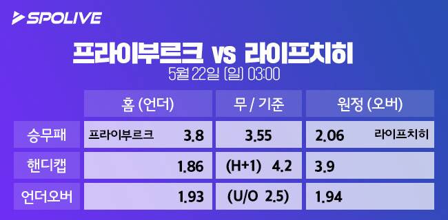 배당률에 따르면 전력상 좀 더 우위에 있는 라이프치히의 승리 가능성이 더 높지만, 9년 만에 최고의 성적을 거둔 프라이부르크의 기세도 만만치 않다. 이 점을 고려하면 치열한 접전 끝에 프라이부르크의 한 골 차 승리를 예상한다.