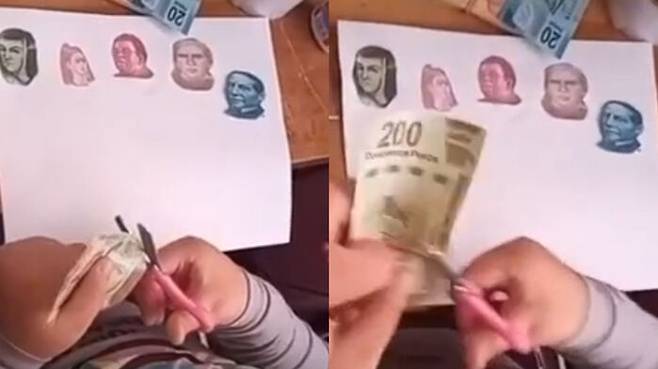 A 씨가 방에 들어갔을 때 딸은 500페소(약 3만 원), 100페소(약 6,000원), 20페소(약 1,300원) 등 지폐 5장에 등장하는 인물들을 오려내 종이에 붙여놓은 상태였습니다.