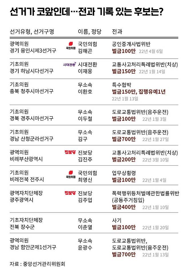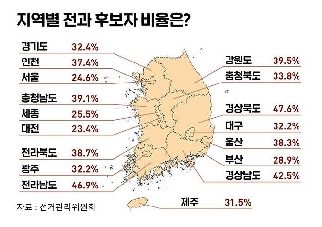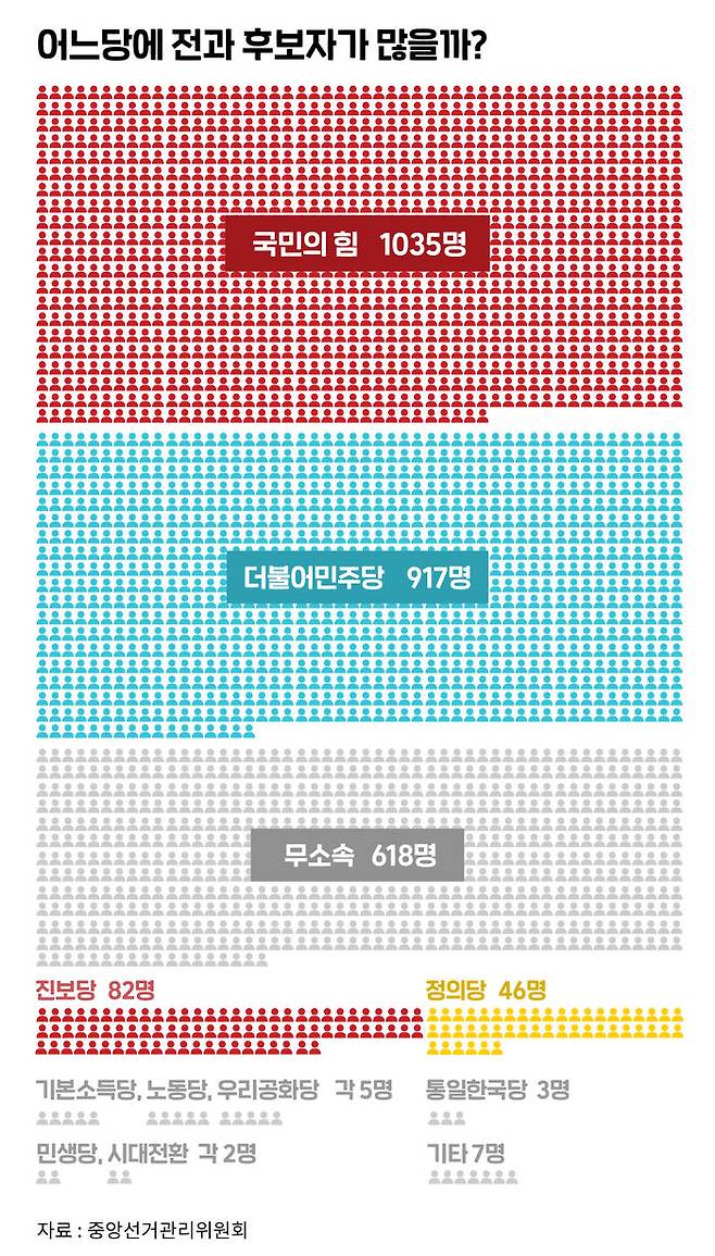 정당별로 봤더니…무소속 후보 절반이 전과 有