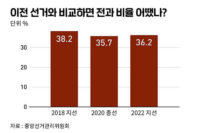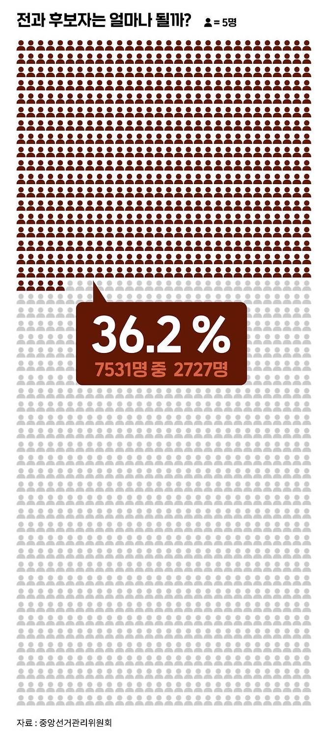 전과 후보 36.2%…최다 전과 14건