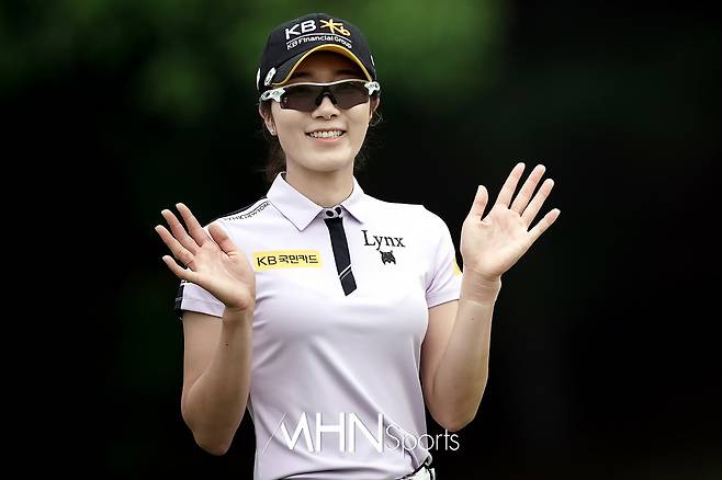 안송이(32.KB금융그룹)가 14번홀 그린으로 이동하고 있다.