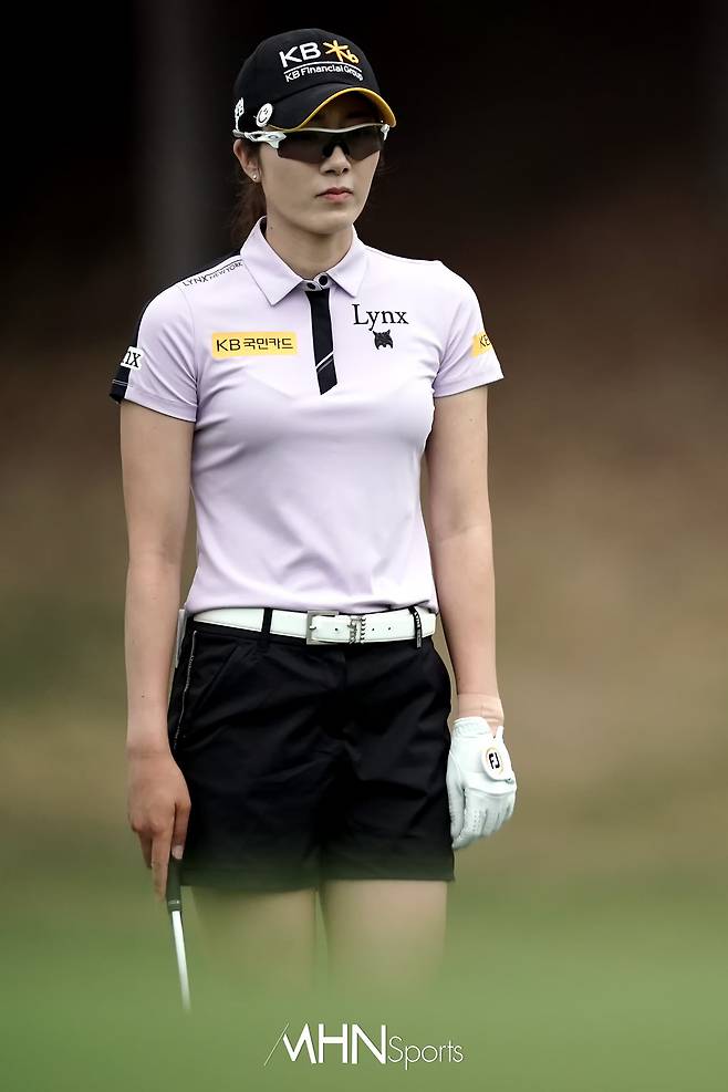 안송이(32.KB금융그룹)가 14번홀 그린 주변에서 어프로치샷을 준비하고 있다.