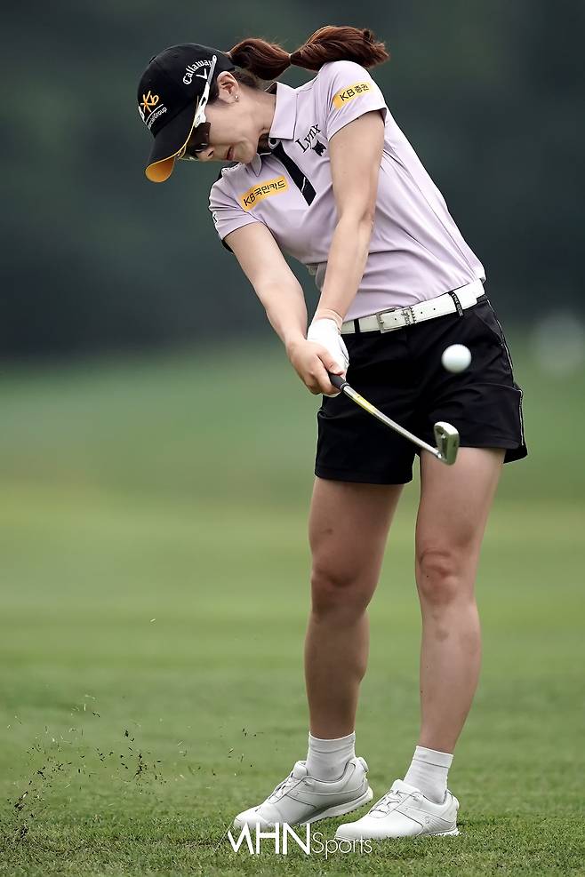 안송이(32.KB금융그룹)가 15번홀 세컨드샷을 날리고 있다.