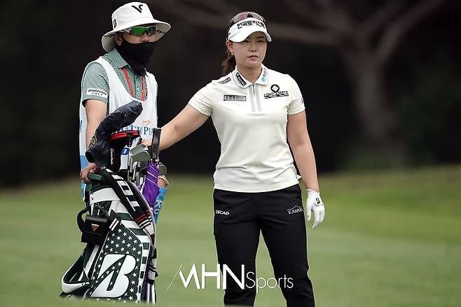 임희정(22.한국토지신탁)이 14번홀 세컨드샷을 준비하고 있다.