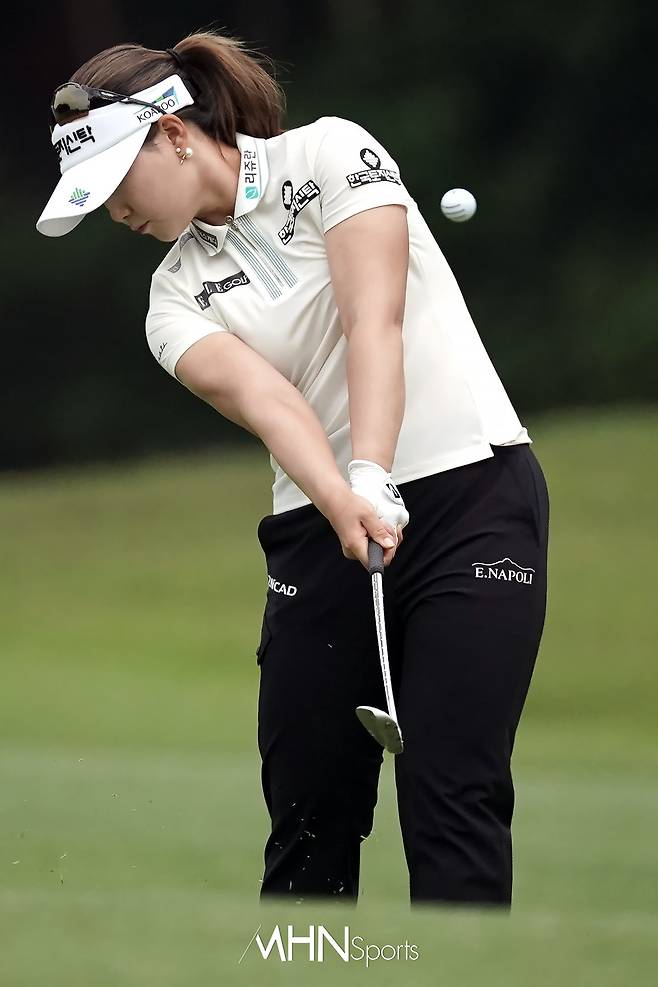 임희정(22.한국토지신탁)이 14번홀 세컨드샷을 날리고 있다.