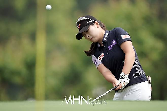 홍정민(20.CJ온스타일)이 13번홀 그린 주변 어프로치샷을 날리고 있다.