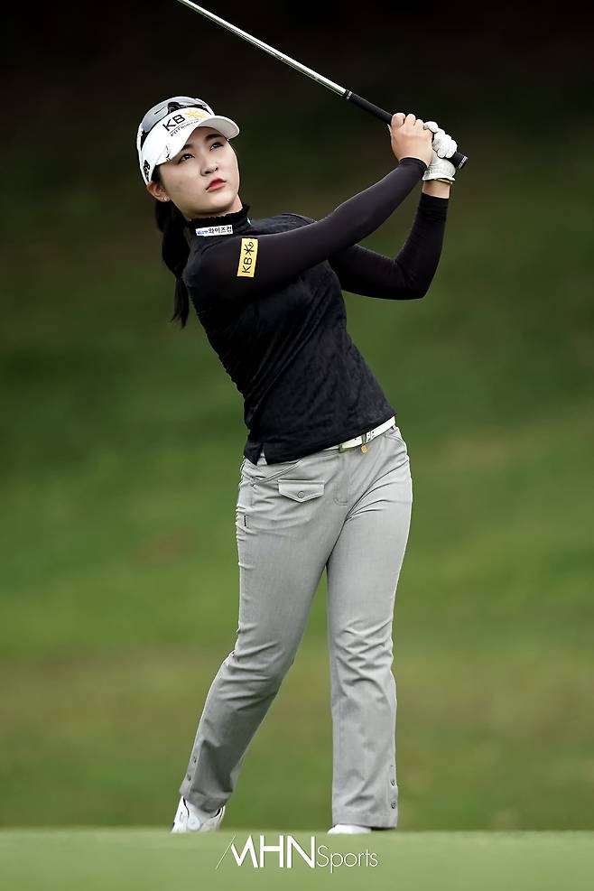 이예원(19.KB금융그룹)이 14번홀 세컨드샷을 날리고 있다.