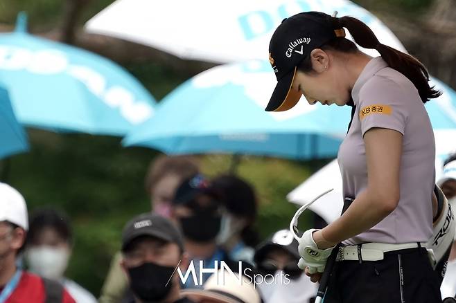 안송이(32.KB금융그룹)가 1번홀 티샷을 준비하고 있다.